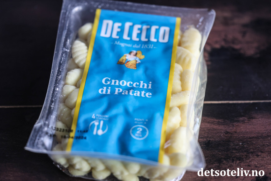 ♥ Som nevnt har jeg her brukt ferdigkjøpt gnocchi. Finnes i flere merker. 500 gram tilsvarer 1 slik pakke.