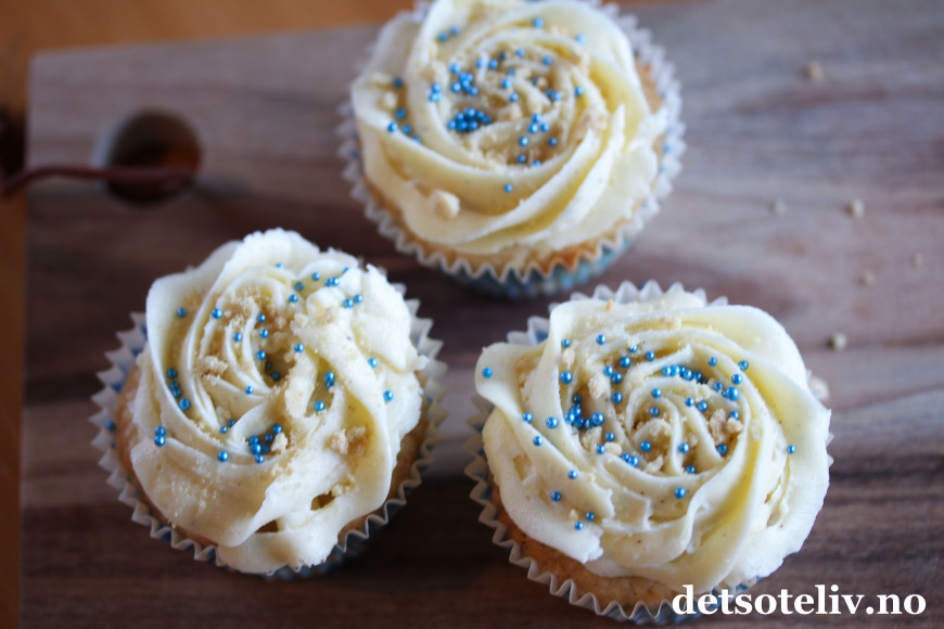 Håper du fikk lyst til å teste ut disse gode vaniljecupcakesene med vanilje-Oreos!