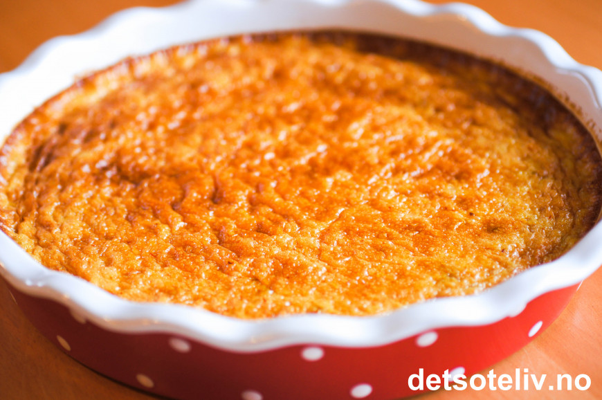 ♥ Tilpass steketiden til størrelsen på den ildfaste formen. Ideelt skal kaken ende opp å bli ca 1,5 cm høy. Du kan eventuelt doble oppskriften og steke kaken i stor langpanne.