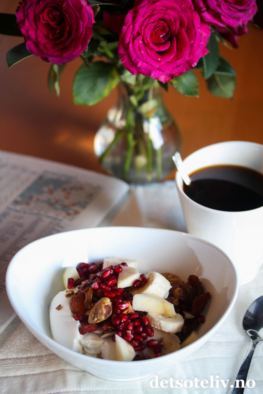 ♥ Oppskriften er merket vegansk, men husk at ikke alle veganere spiser honning. Som alternativ kan man f eks bruke samme mengde lønnesirup. Server da for eksempel med havremelk eller mandelmelk i stedet for gresk yoghurt.