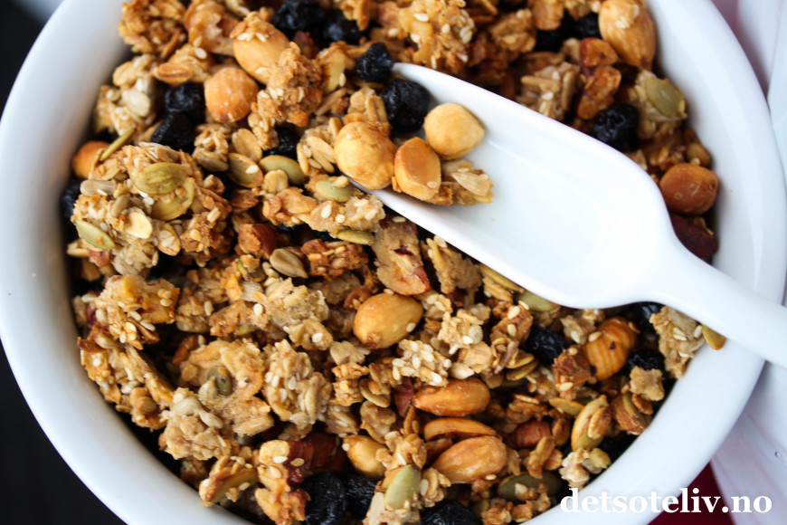 Her på Det søte liv starter vi opp ny uke med ny kjempegod oppskrift på Granola med vanilje og blåbær!
