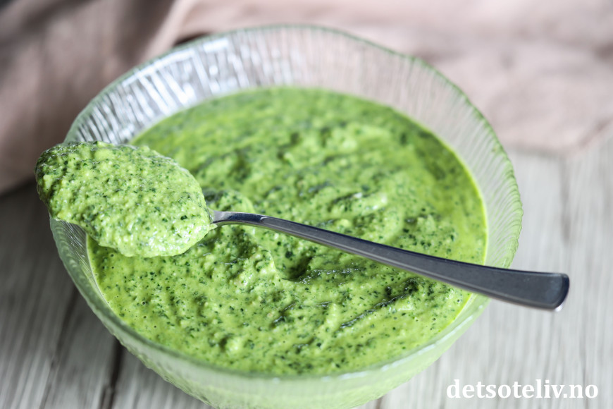 PS: Green Goddess Dressing finnes i flere varianter. Dette er den som har trendet på TikTok de siste par årene. Originalen stammer visst nok fra San Francisco og er noe annerledes enn denne, og lages med blant annet ansjos, majones og estragon.