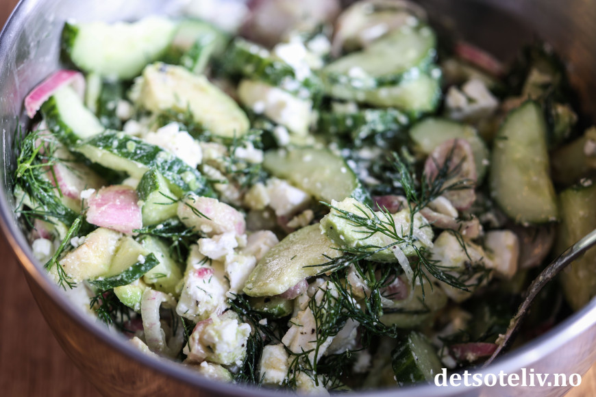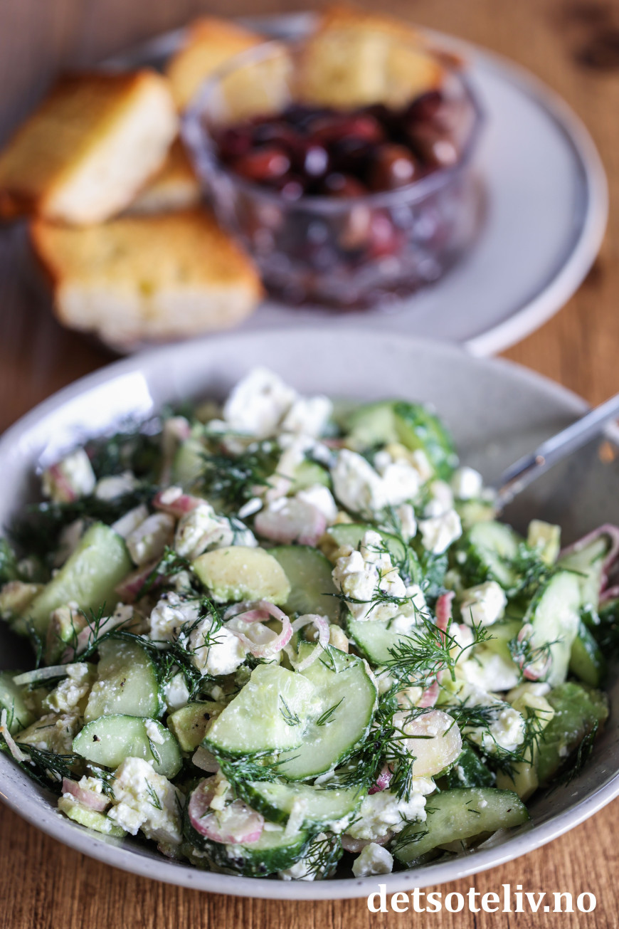 Dette er en av de beste salatene jeg vet om! 😍 Den er greskinspirert, og lages med agurk, sjalottløk, avokado og feta. Og selvfølgelig dill - masse dill! Og en herlig dressing med ferskpresset hvitløk!
