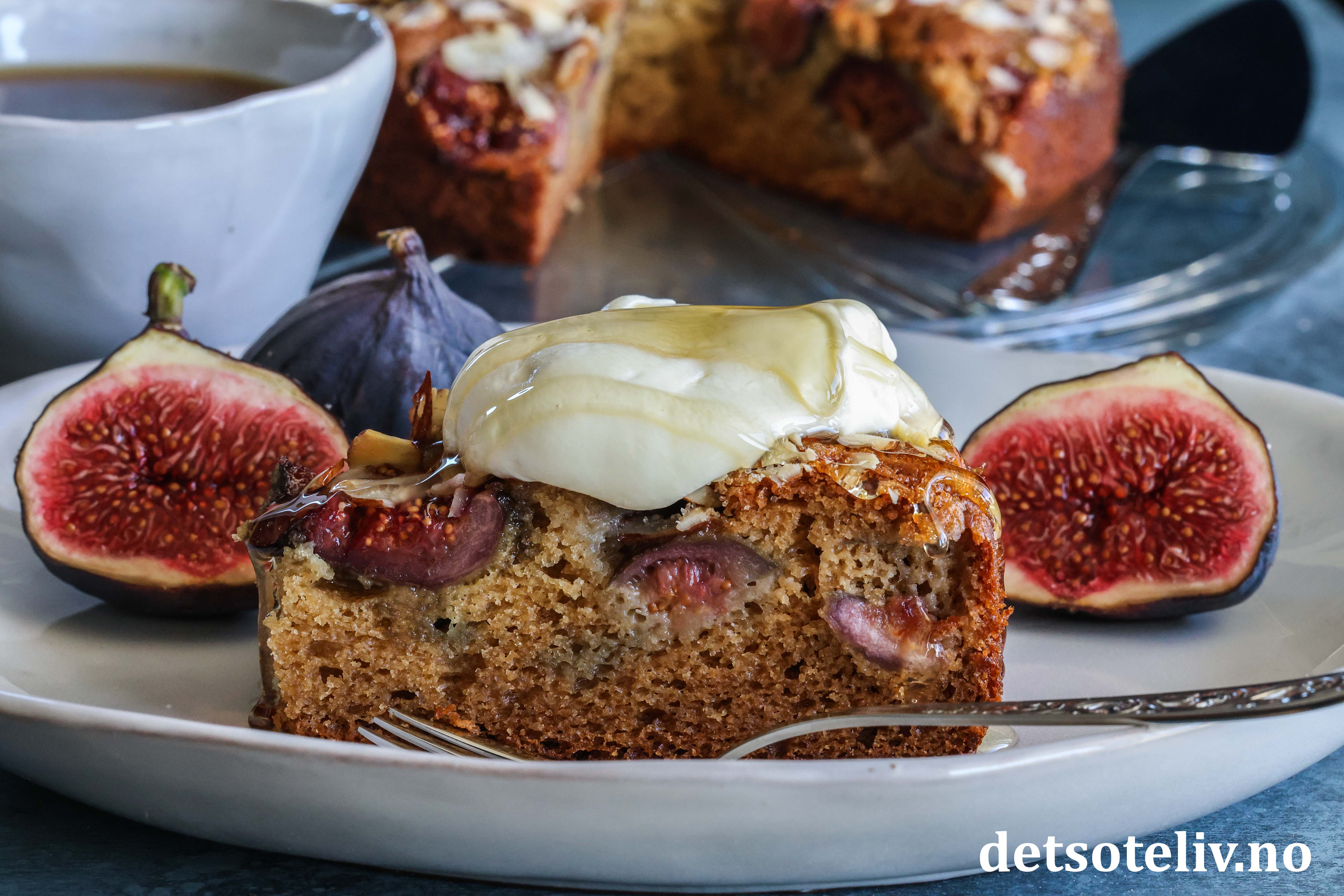 Kaken blir ekstra god sammen med en klatt gresk yoghurt og flytende honning, og eventuelt noen ekstra ferske fiken.