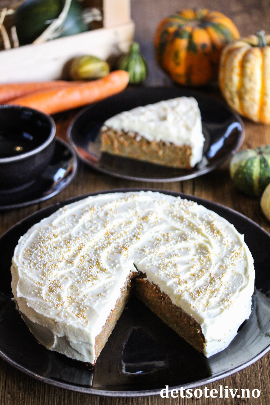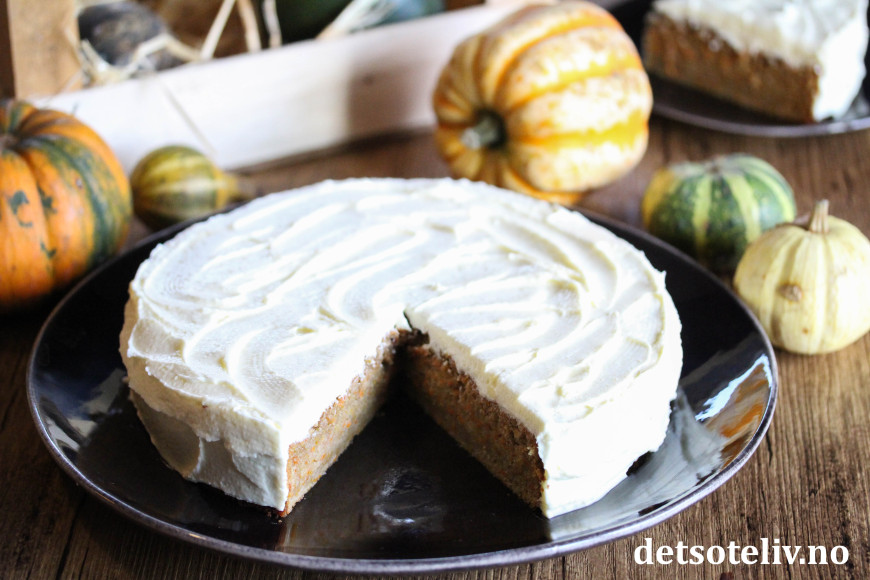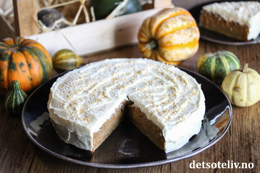 Deilig kake som ligner vanlig gulrotkake, men som inneholder revet gresskar i tillegg!