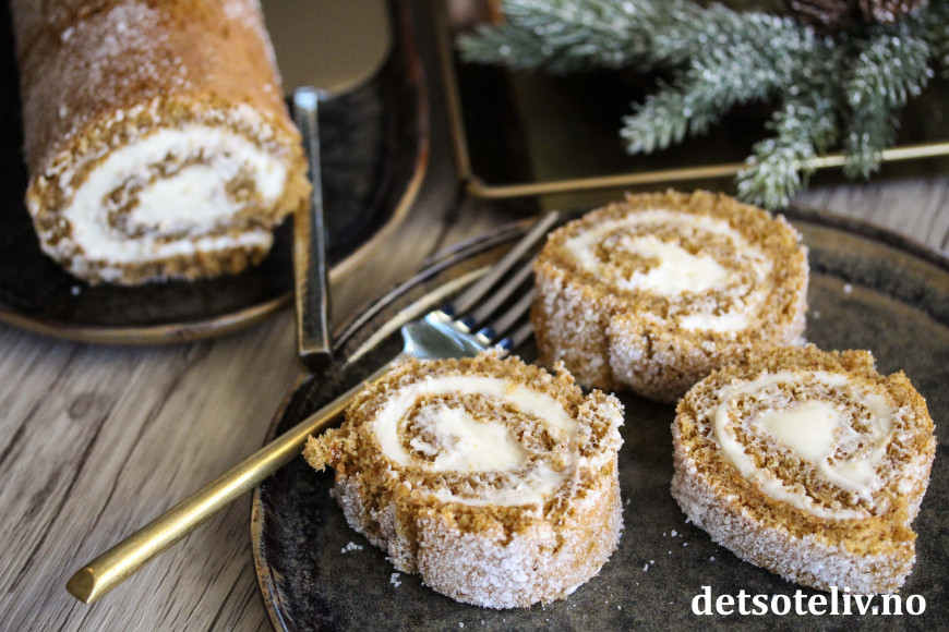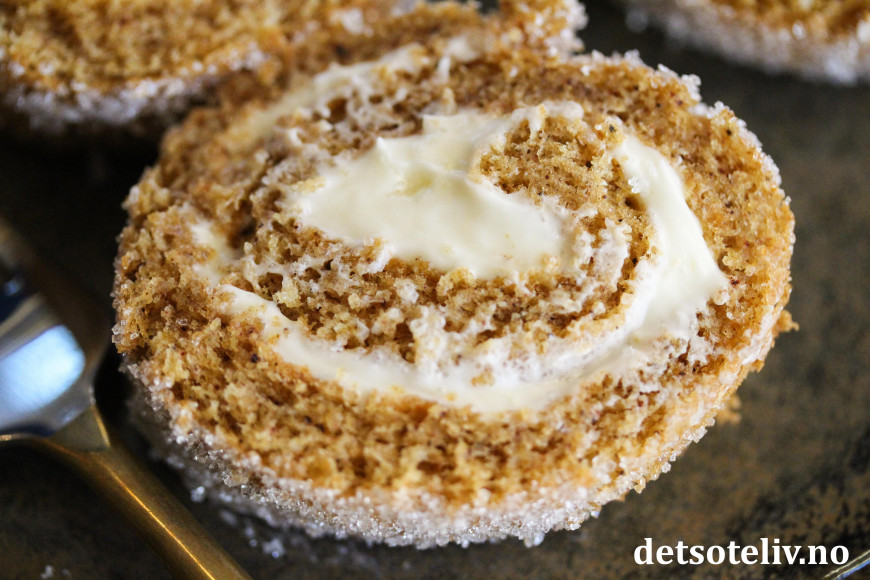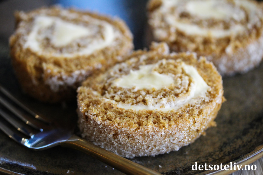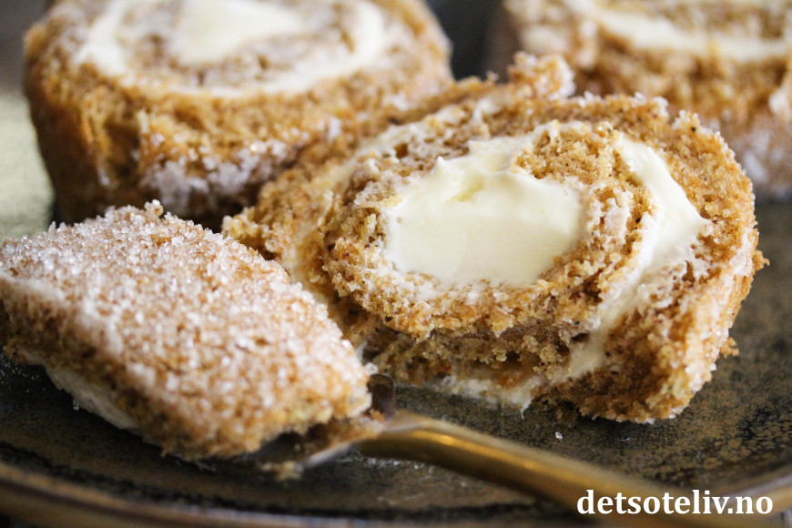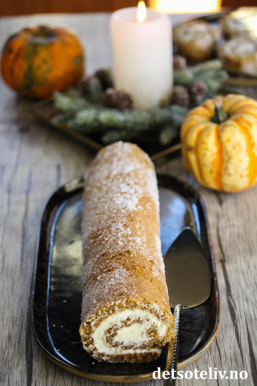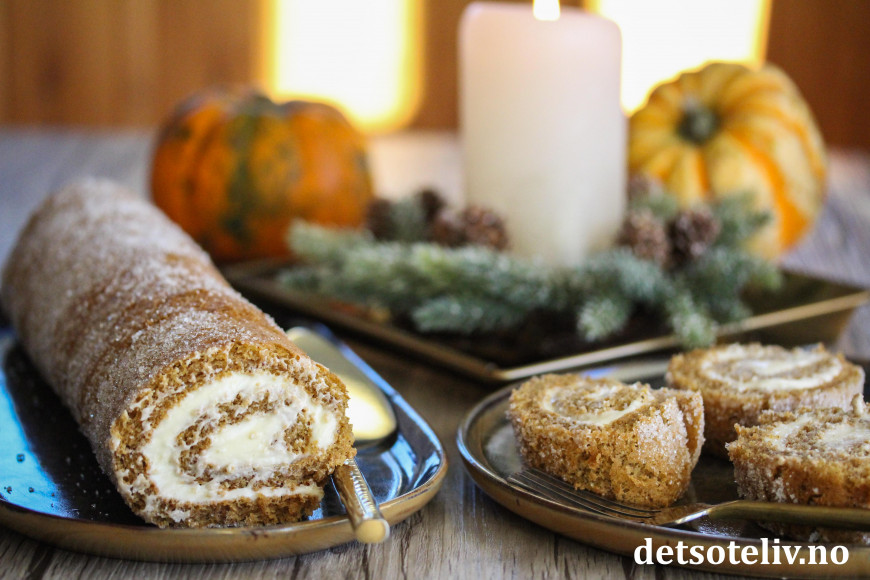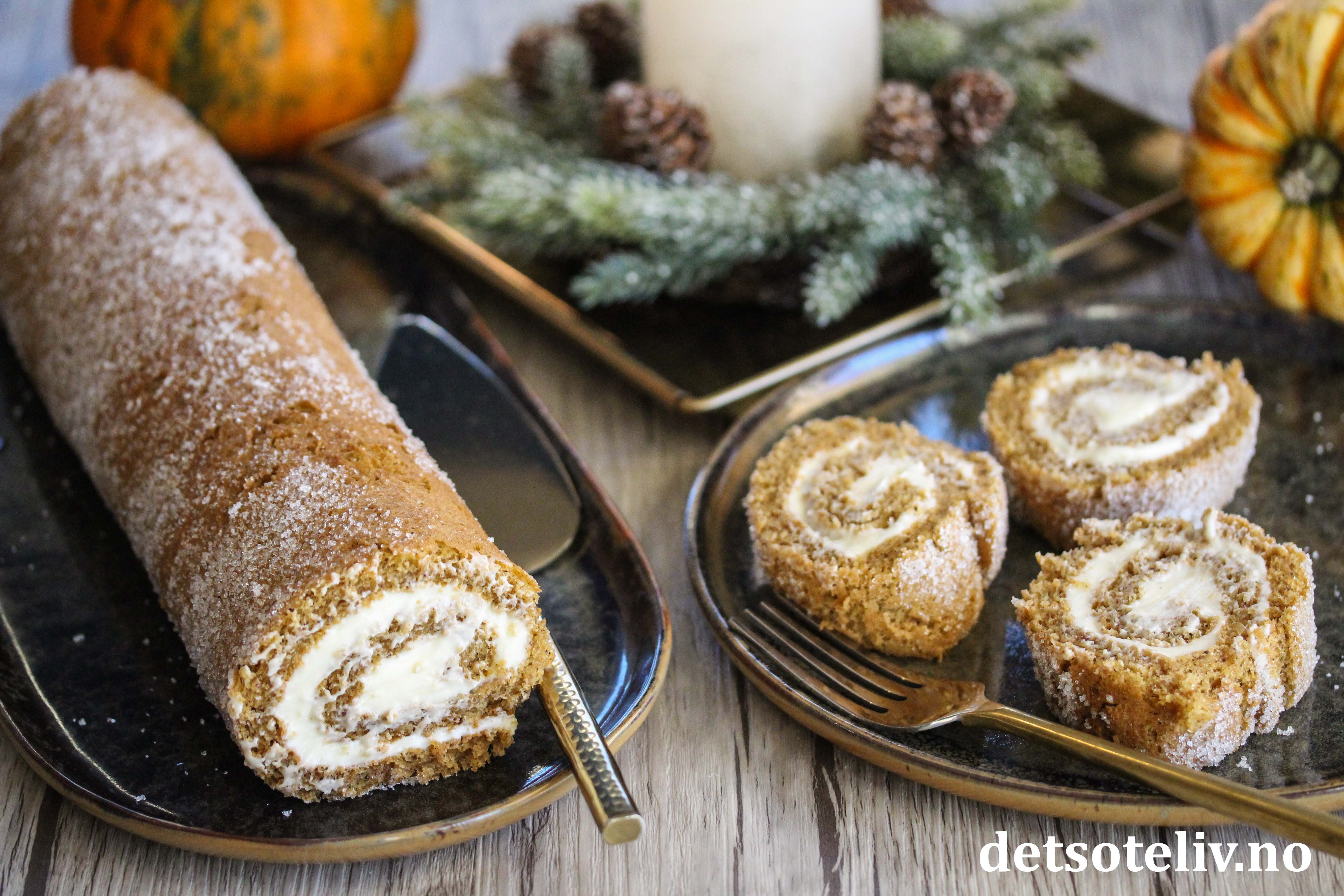 Høstens deilige rullekake med gresskar, krydder og ostekremfyll!