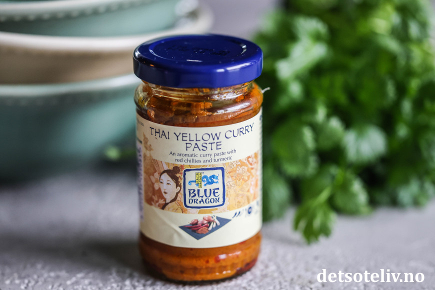 ♥ Thailandsk gul curry paste fås kjøpt i de fleste store norske matbutikkene. Jeg synes den gule passer best til denne gresskarcurryen, men dersom du ikke får tak i den, kan du også fint bruke rød curry paste. Juster mengden curry paste alt etter hvor sterk du ønsker at curryen skal være. Jeg bruker 2 toppede teskjeer.