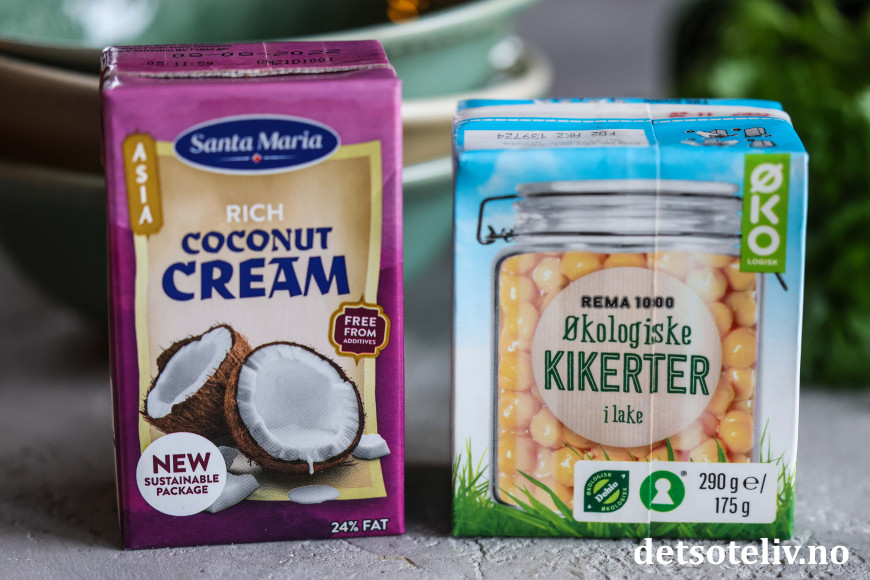 ♥ Jeg har her brukt kokoskrem (Coconut Cream), som er en nærmest fløteaktig kokosmelk. Det går også bra å bruke vanlig kokosmelk.