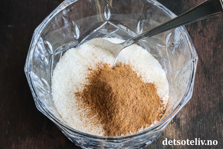 Bland sukker og kanel og dryss dette på toppen av kaken.