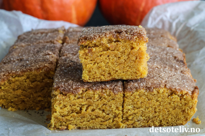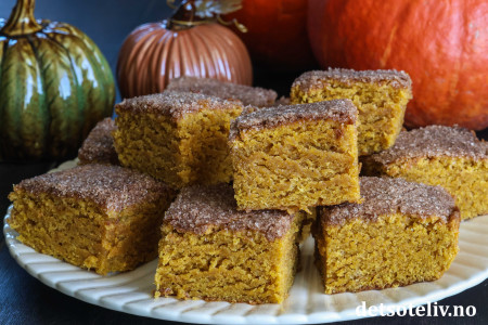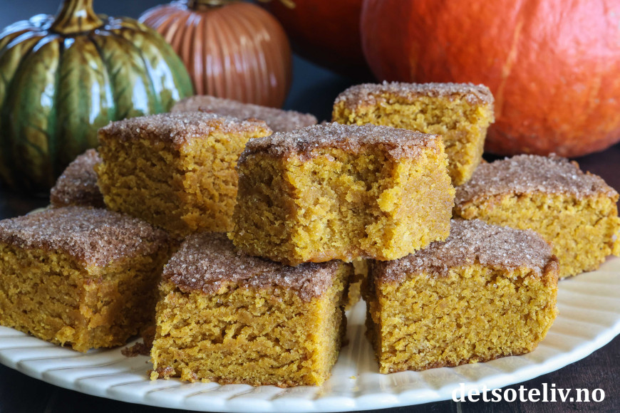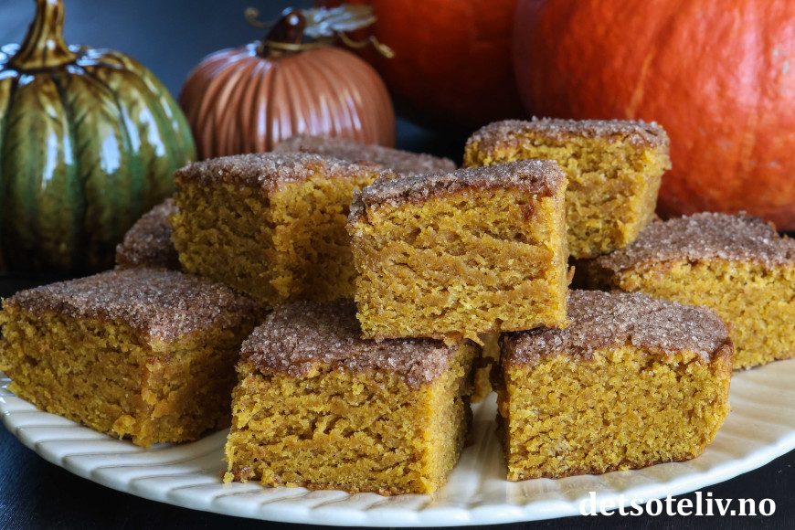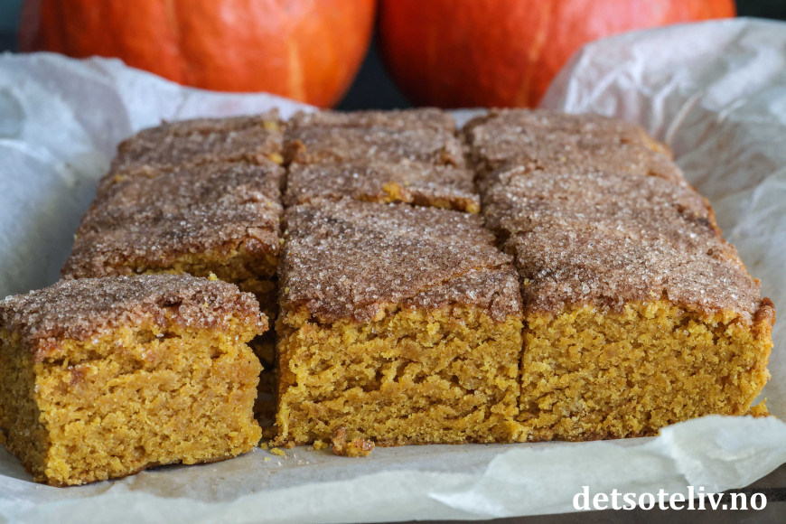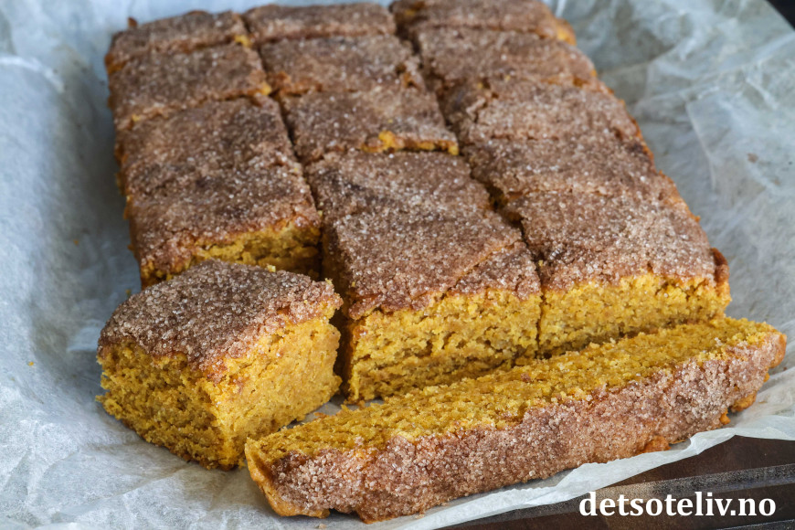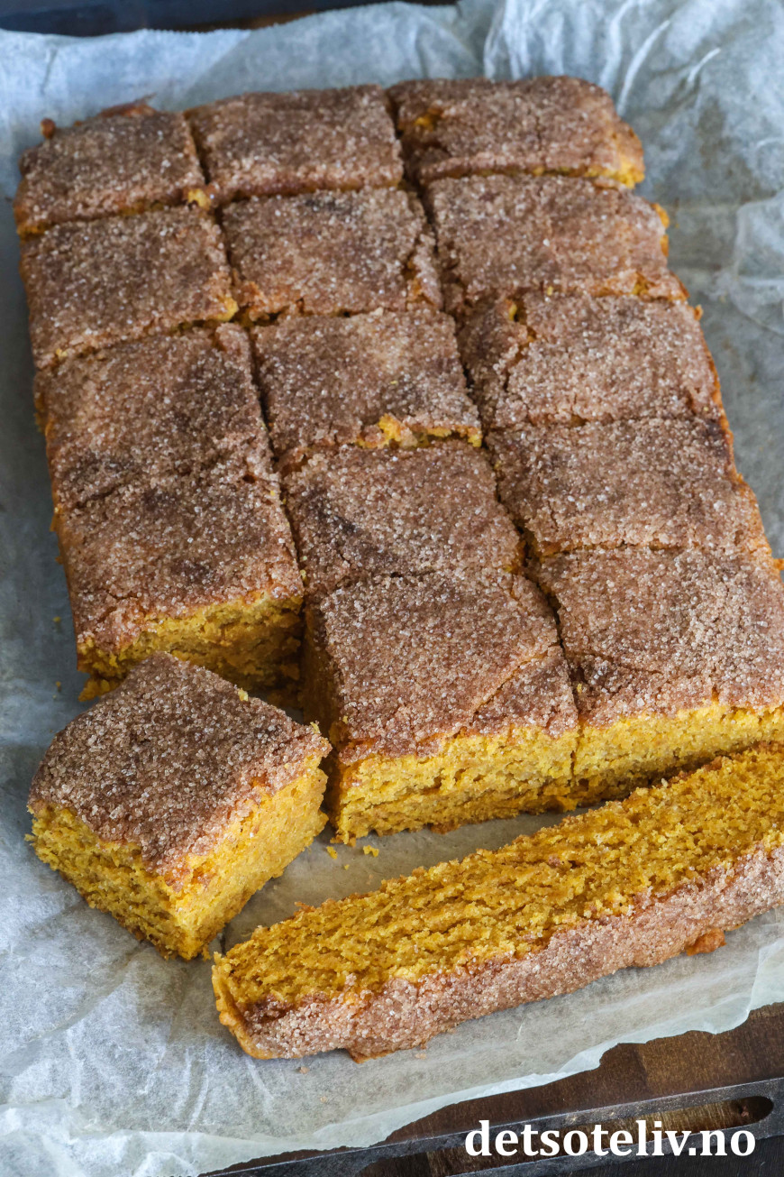 Her har du en herlig, lettlaget oppskrift på Gresskarkake der deigen bare skal røres raskt sammen. Kanelsukkeret på toppen av kaken gir en deilig sprø skorpe oppå de myke kakestykkene.