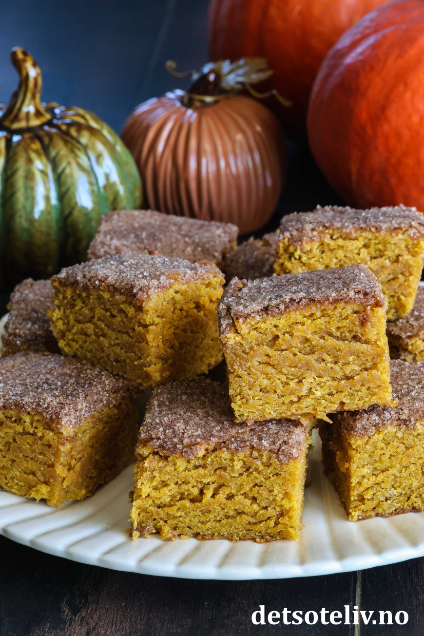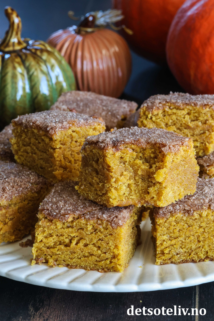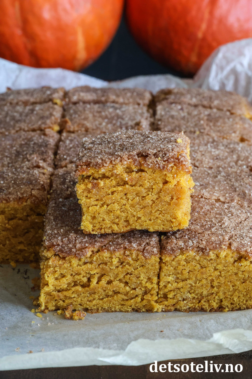 Her har du en herlig, lettlaget oppskrift på Gresskarkake der deigen bare skal røres raskt sammen. Kanelsukkeret på toppen av kaken gir en deilig sprø skorpe oppå de myke kakestykkene.