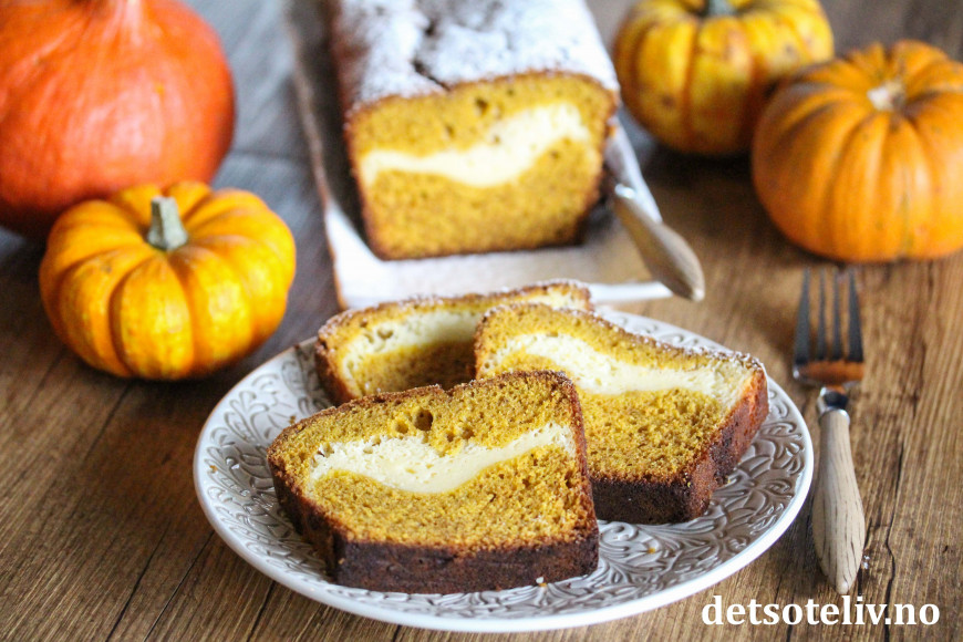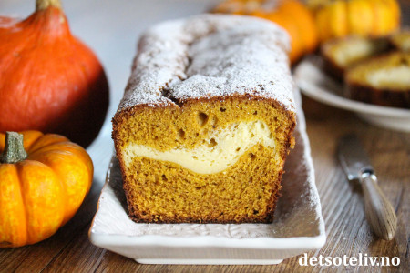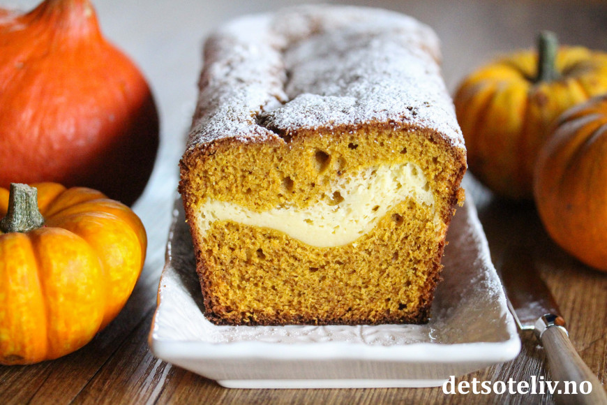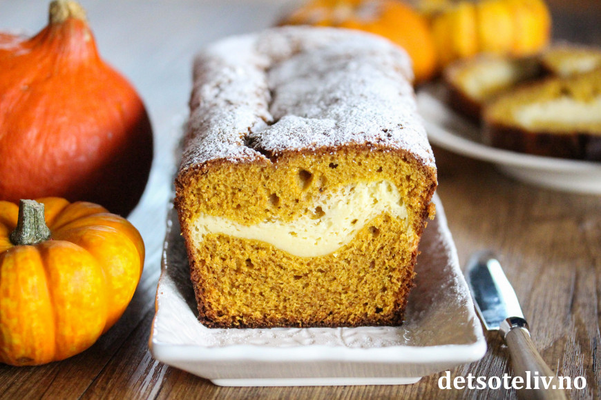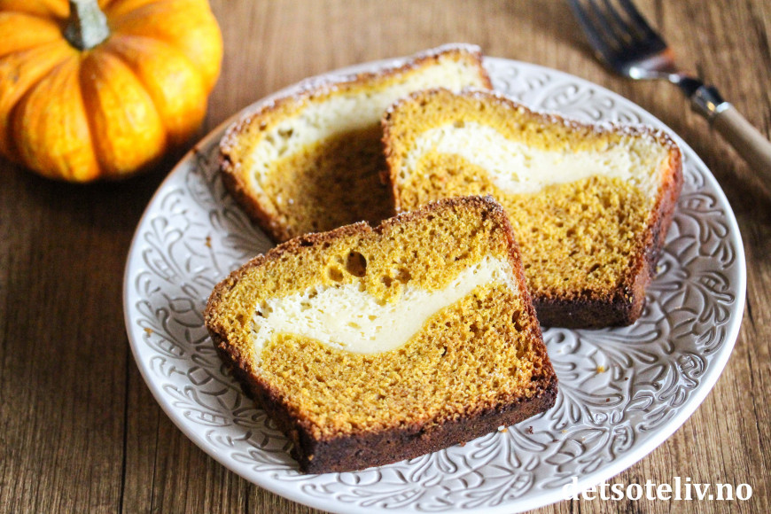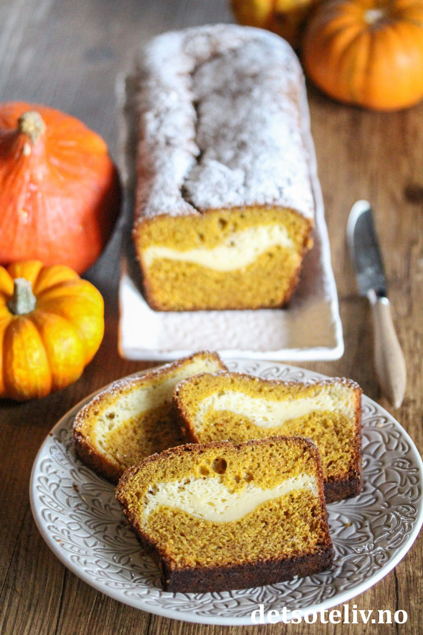 Denne amerikanske formkaken (Pumpkin Cream Cheese Bread) lages med både hvitt og brunt sukker, og får deilig, mild kryddersmak.