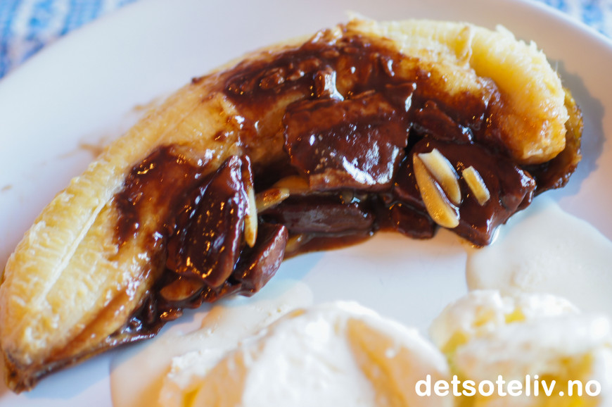 Da er bananene myke og duftende og sjokoladebitene halvsmeltet.