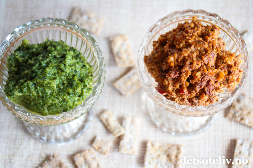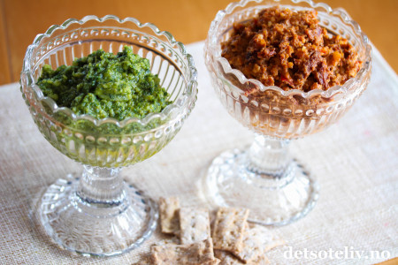Her har jeg laget pesto med Västerbottensost i to herlige varianter; en grønn og en rød.