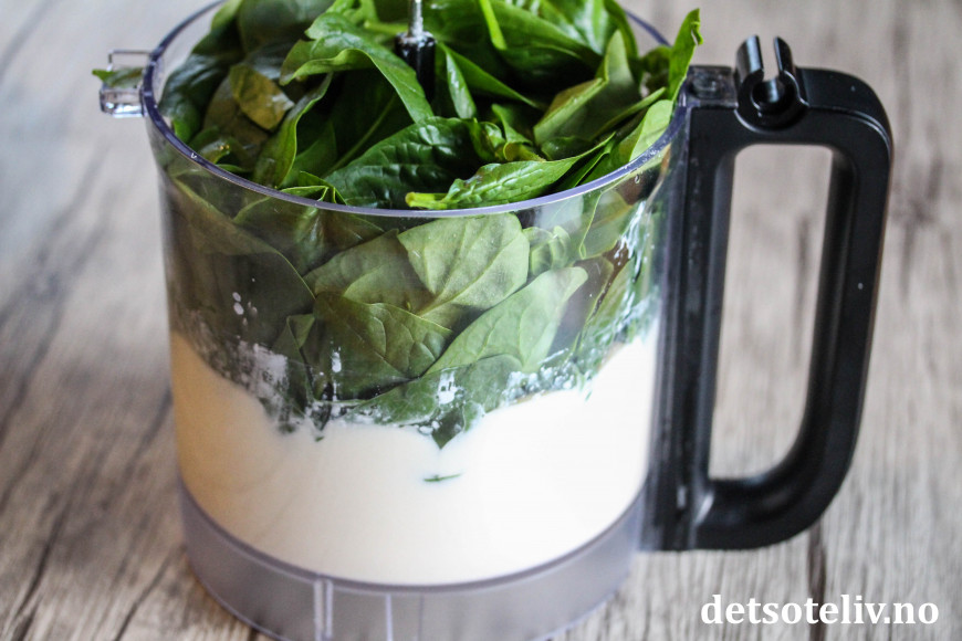 Stapp spinatbladene i food processoren og mos dem inn i blandingen.