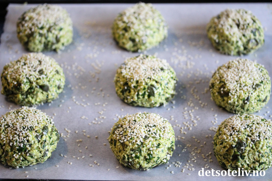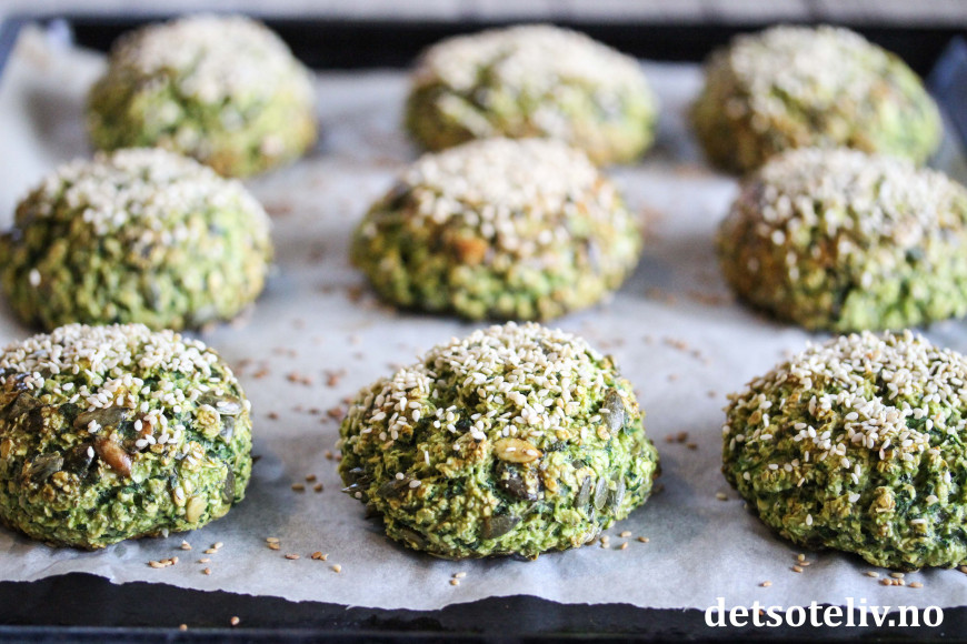 Denne gangen lagde jeg dem grønne med spinat og gresskarkjerner!