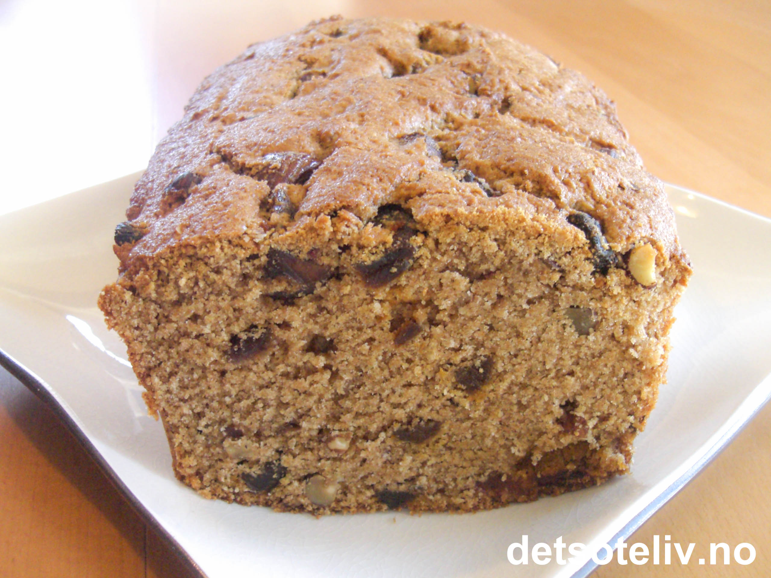 Du kan bruke forskjellig type tørket frukt til denne kaken, slik som rosiner, hakkede aprikoser, hakkede svisker, fiken eller dadler. I kaken på bildet er det brukt rosiner og dadler.