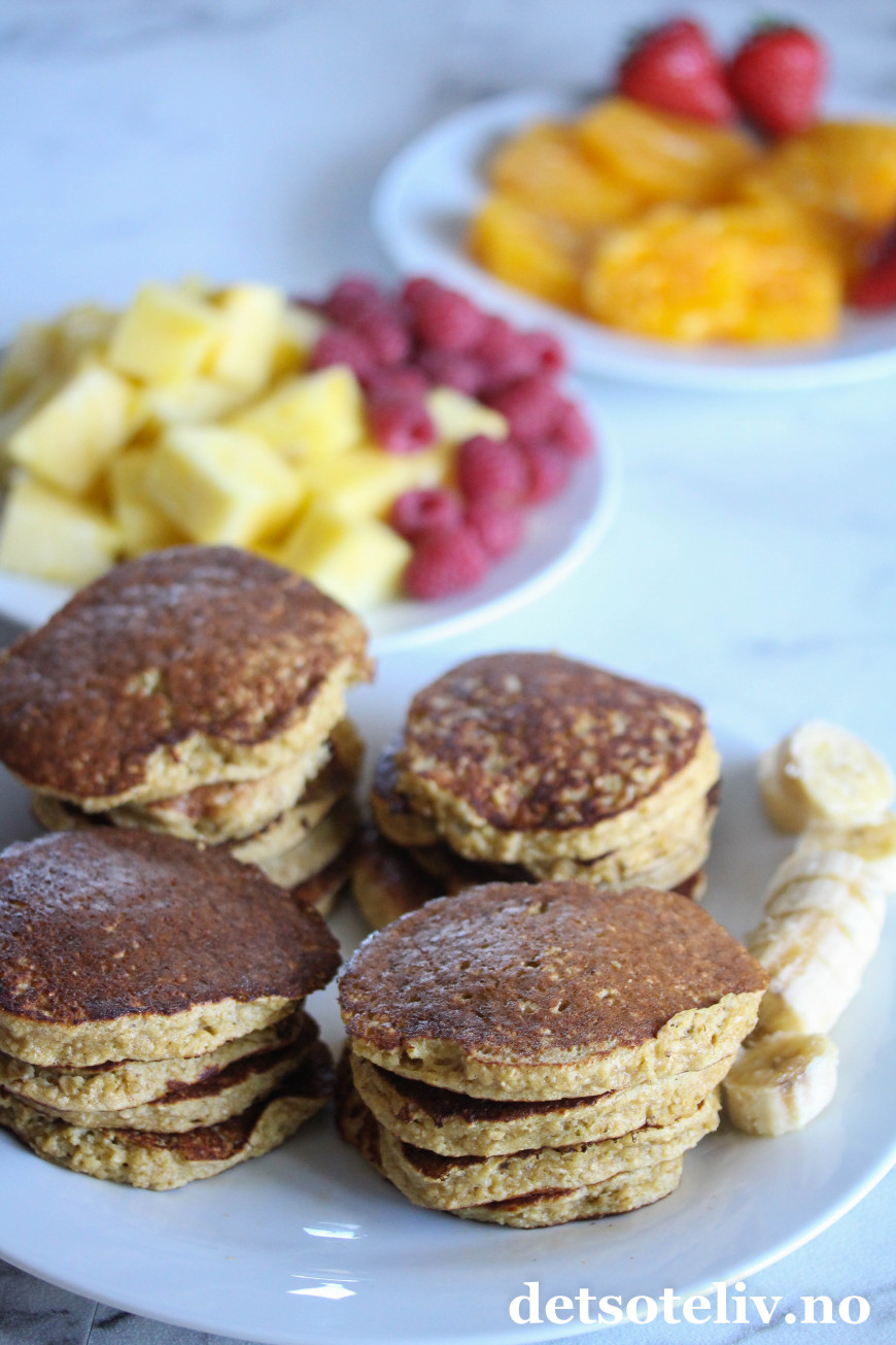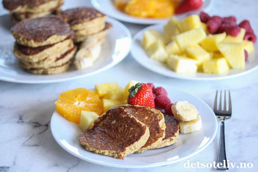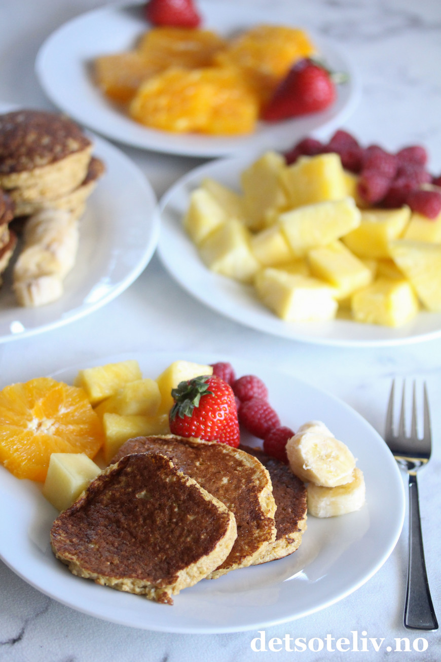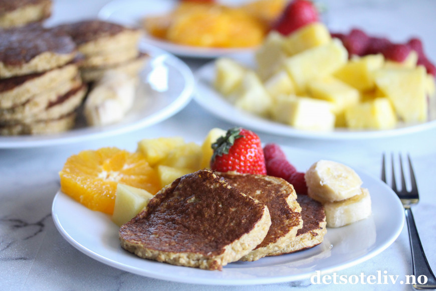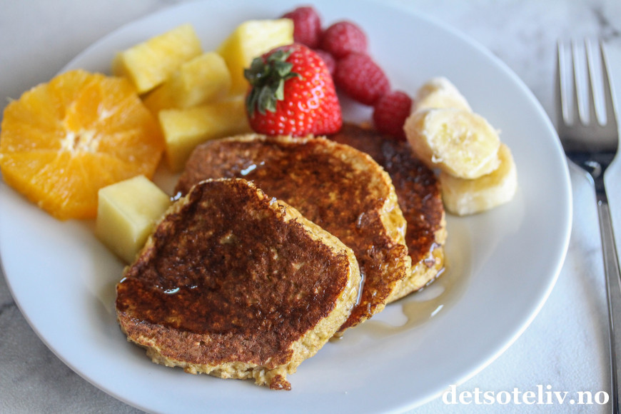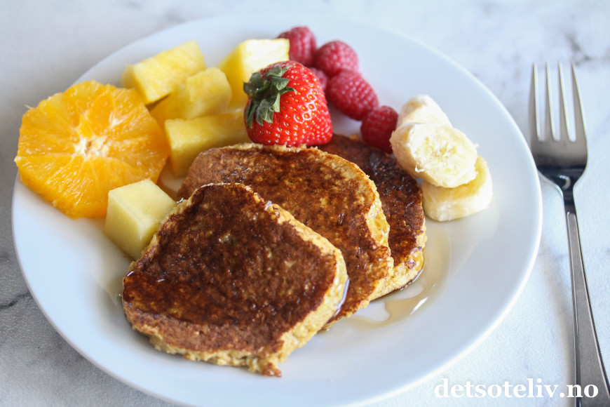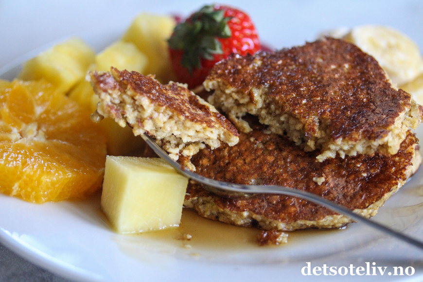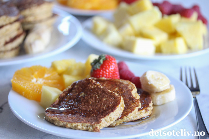 Serveres gjerne sammen med oppskåret, frisk frukt og litt lønnesirup.