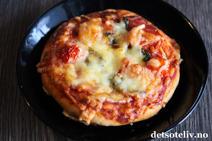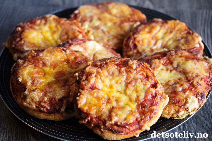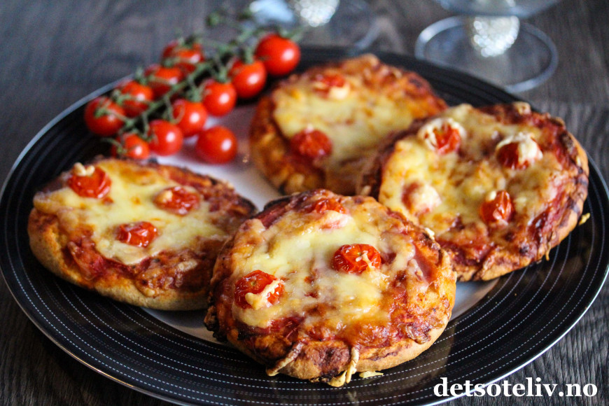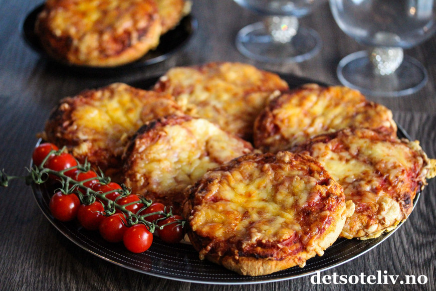 Runde, flate pizzaboller får man kjøpt i flere matbutikker, og de er veldig populære. Hjemmelagde er de enda bedre! Du kan da dessuten styre hva du ønsker å ha som topping, og du kan også lure inn noe grovt mel i deigen så pizzabollene blir sunnere uten at noen merker forskjell.