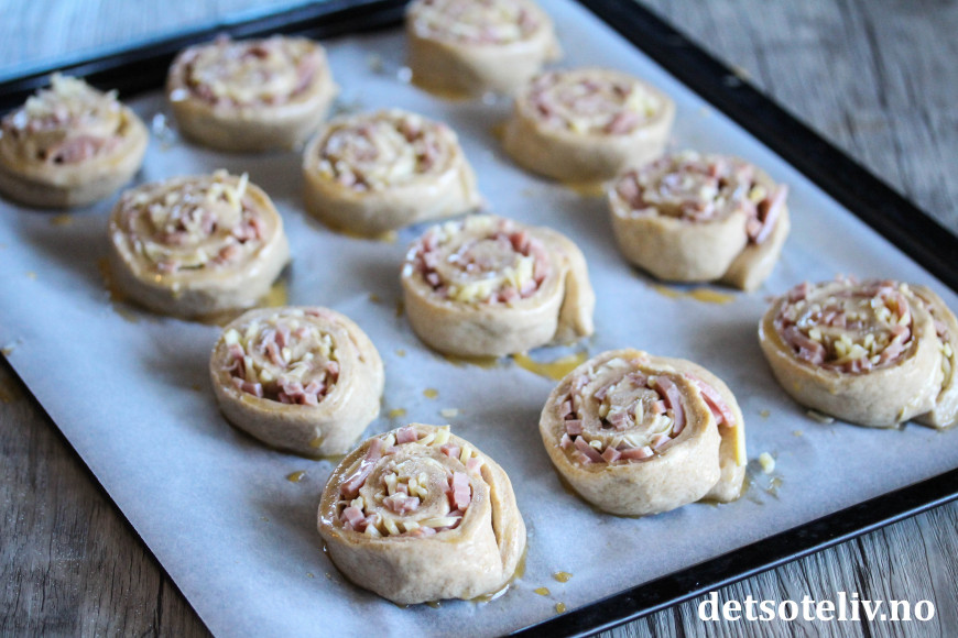 ♥ Merk imidlertid at tomatpuré og urter gjør skinkesnurrene saftigere.