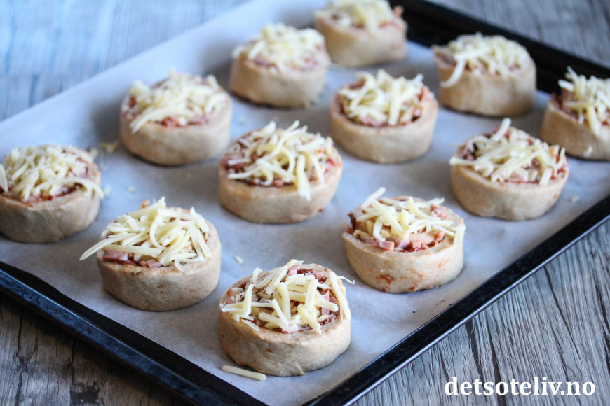 Skinkesnurrer med bare ost og skinke er også veldig gode!