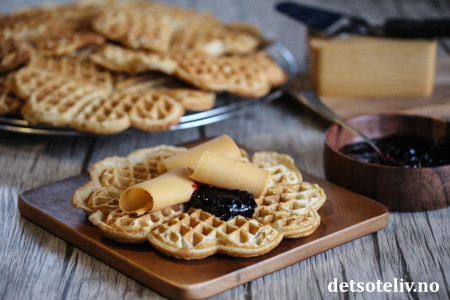 Se også oppskrift på Grove hverdagsvafler, som er enda et lite hakk grovere enn disse vaflene.