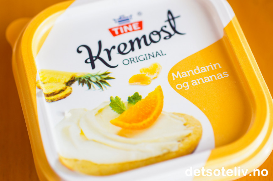 ♥ Den gode tropiske smaken på frostingen kommer her av at jeg har brukt kremosten fra Tine som har smak av mandarin og ananas.