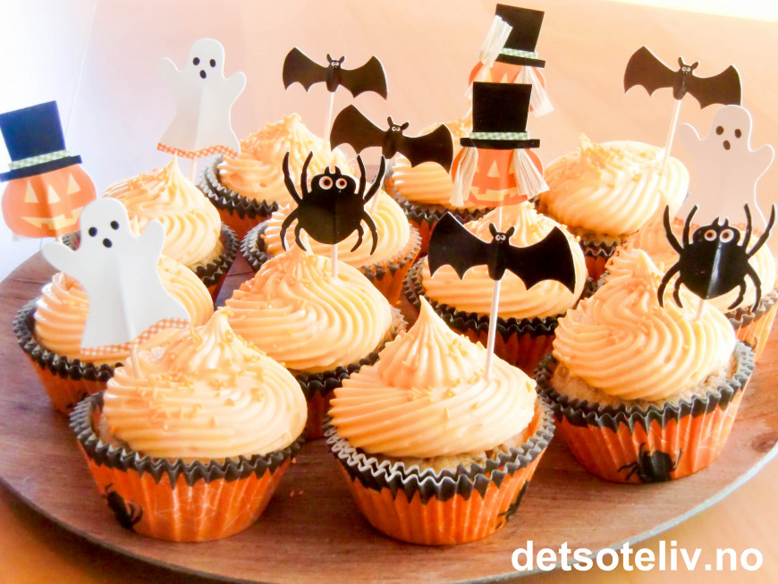 Se også "Spooky Cupcakes" som er basert på samme oppskrift, men med hvit ostekrem.