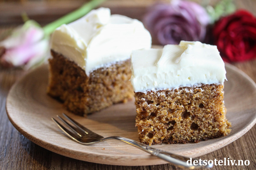 Se også oppskrift på helt klassisk Gulrotkake i langpanne, som er blant de mest populære oppskriftene her på Det søte liv!