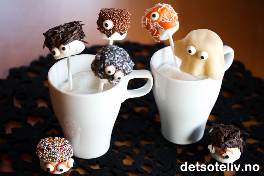 Noen marshmallows kan du beholde uten pinner hvis du vil lage noen enkeltstående hoder.
