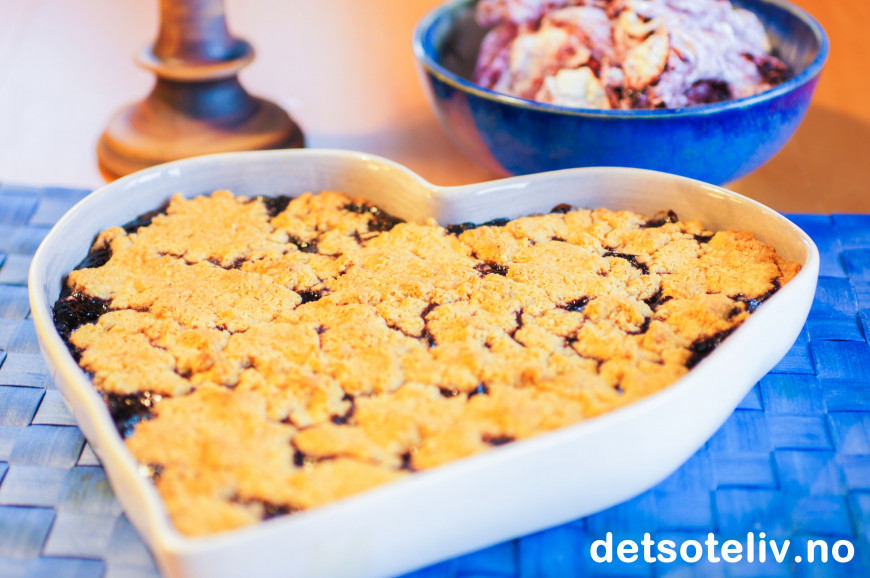 Smuldre resten av deigen jevnt fordelt over syltetøyet.