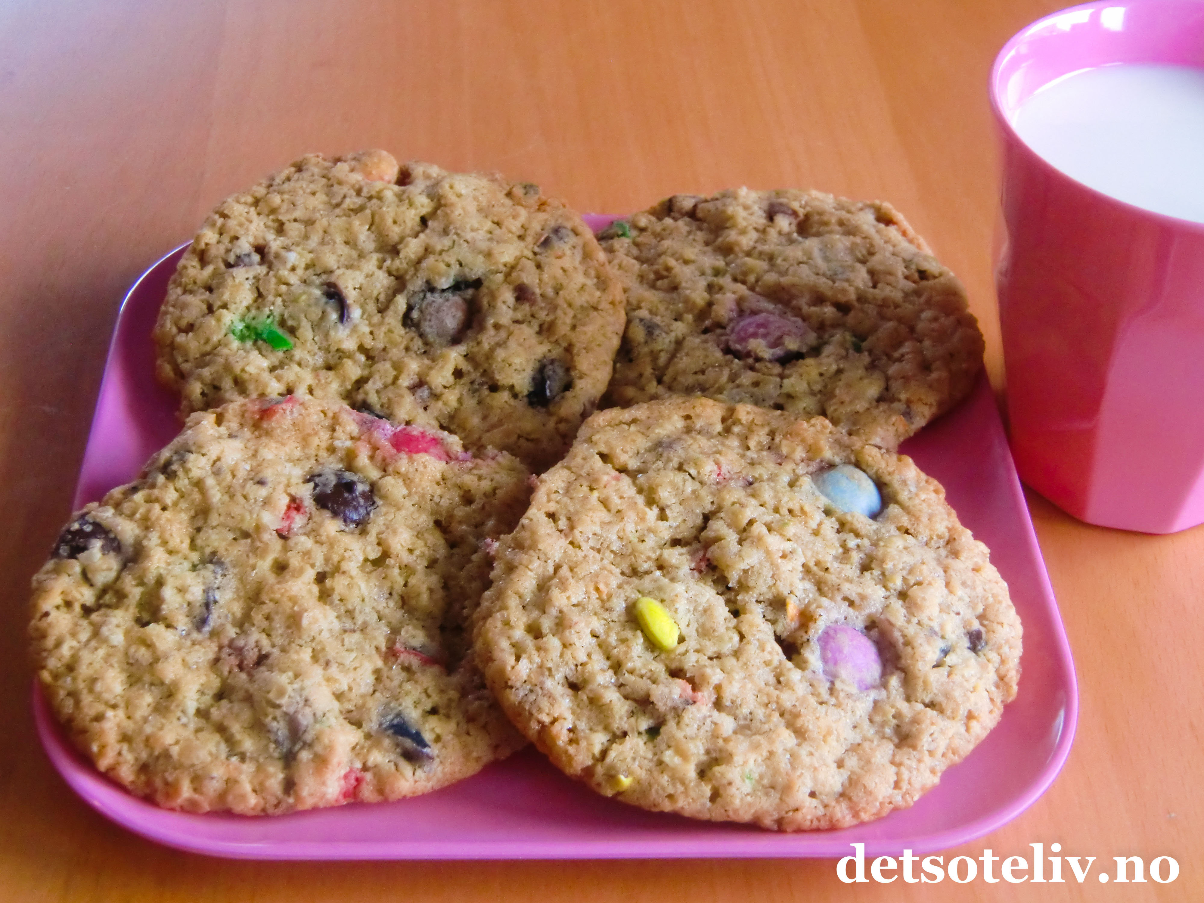 "Havrecookies med Smarties" oppbevares i tettsluttet kakeboks.