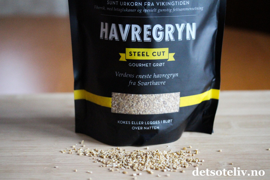 ♥ I tillegg til vanlige havregryn (små og store), har jeg altså her brukt kuttet havre (steel cut svarthavre) av merket Den Sorte Havre. Fås kjøpt i de fleste store matbutikkene.