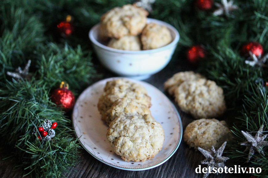 Stek kakene midt i ovnen ved 170°C i ca 10-15 minutter, til kakene er gylne. Avkjøl på rist.