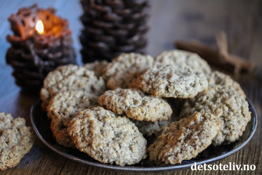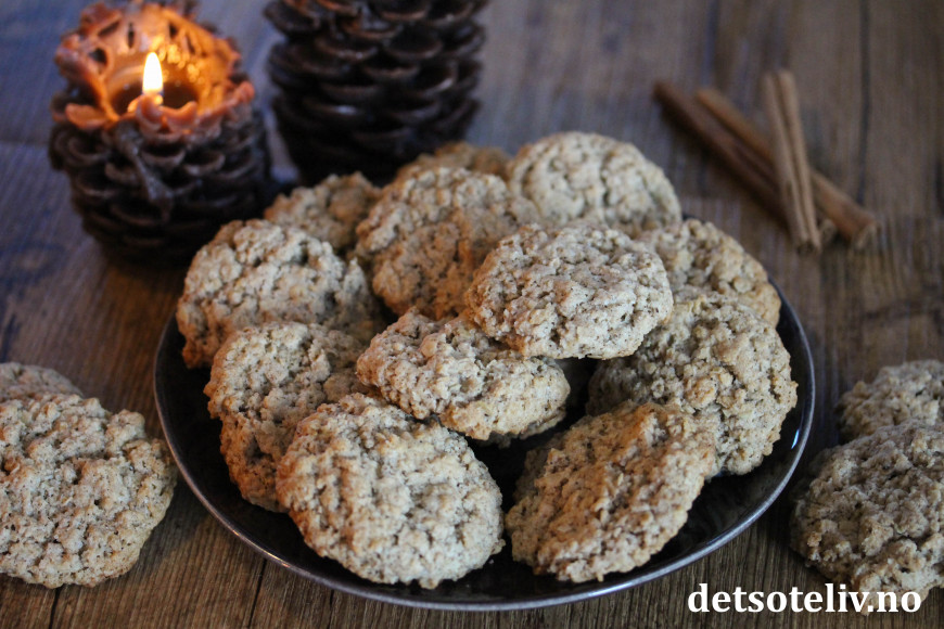 Havremakroner med krydder smaker både nellik, kanel og kardemomme, og egner seg eksepsjonelt bra som julesmåkaker!