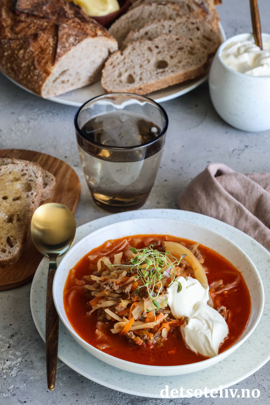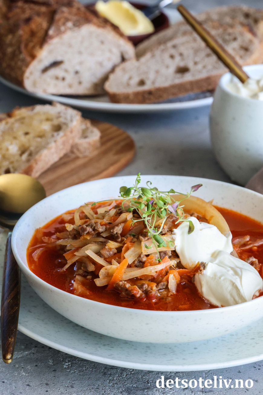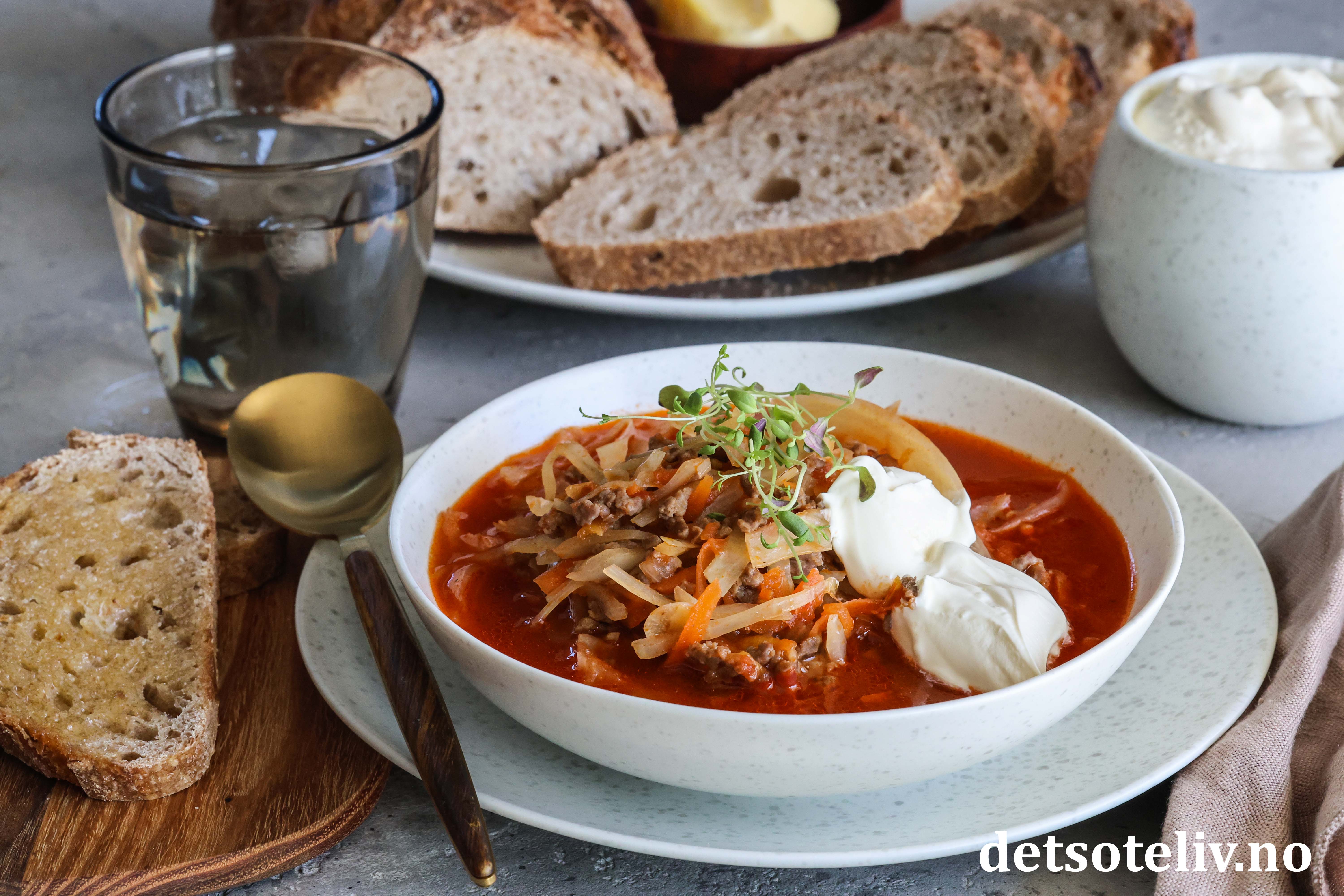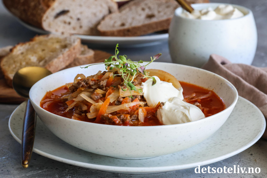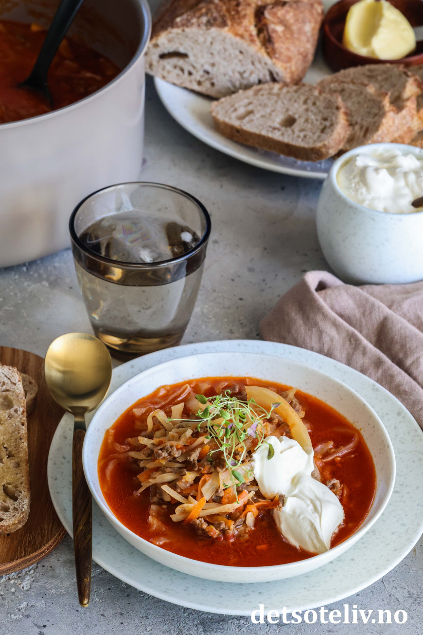 La suppen småkoke i 5–10 minutter til. Spe med litt mer vann dersom du synes at suppen virker for tykk.
