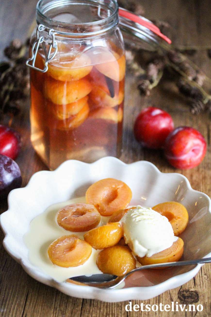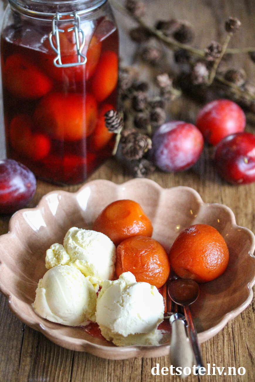 Hermetiske plommer er nydelige å servere som dessert, gjerne sammen med vaniljeis, vaniljesaus eller en kremklatt.