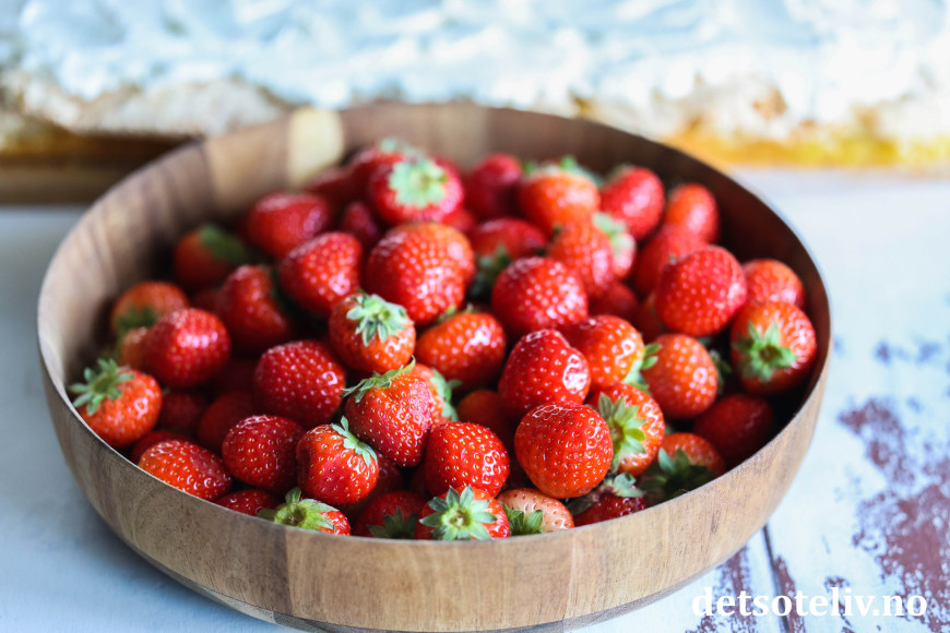 ♥ Utenom jordbærsesongen kan du dekke kaken med andre bær og frukter.