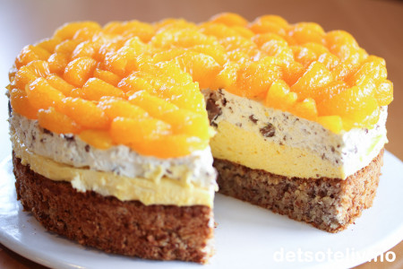 Løsne kakeringen fra kaken med en kniv som er dyppet i varm vann. Fjern kakeringen. Pynt kaken med masse godt avrente (se tips), hermetiske mandarinbåter.