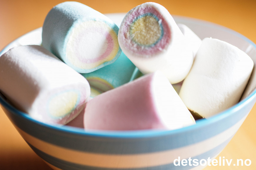 De vakre marshmallowsene du ser på bildet har jeg kjøpt i butikken til Åhlens.