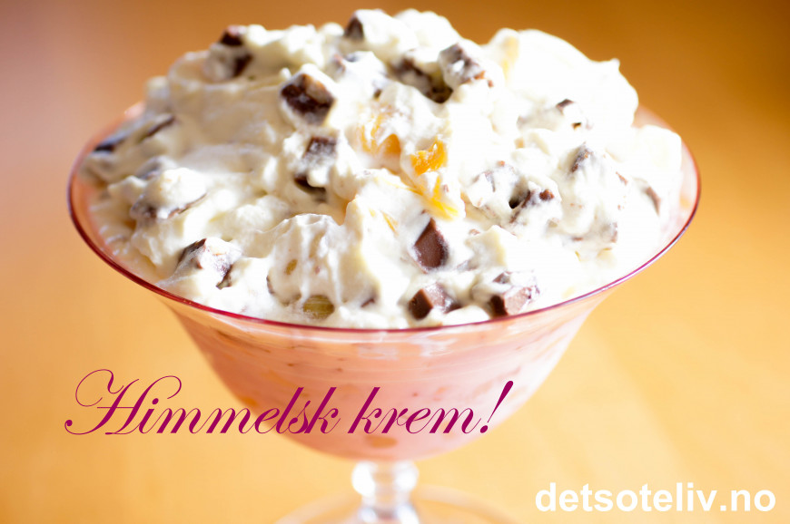 "Himmelsk krem" bør serveres i løpet av et par timer etter at den er laget.