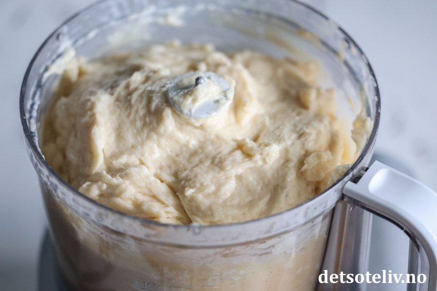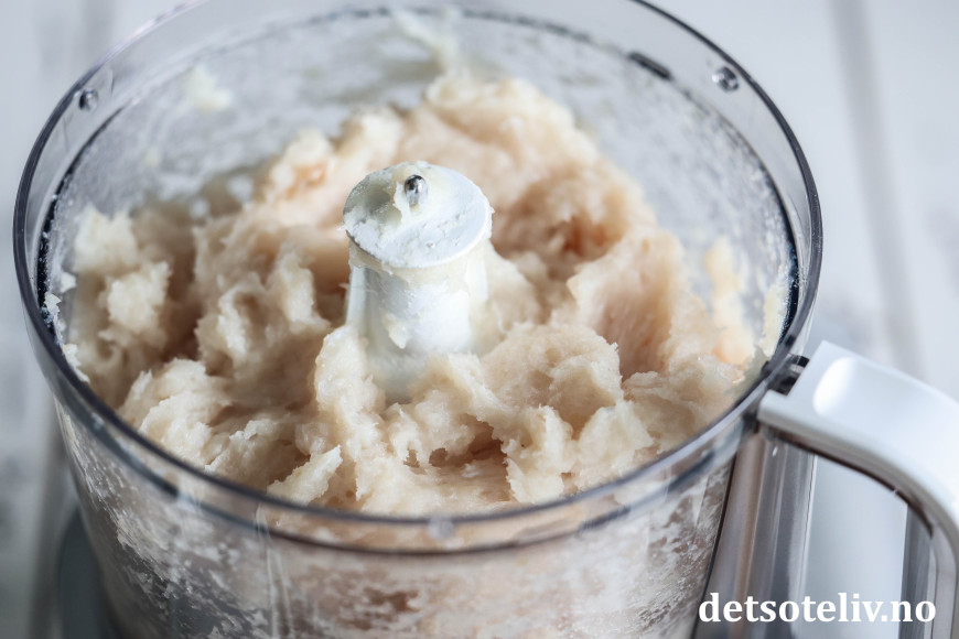 Igjen være nøye på å skrape langsmed kanten av food processoren slik at du får en jevn konsistens på hele fiskemassen.