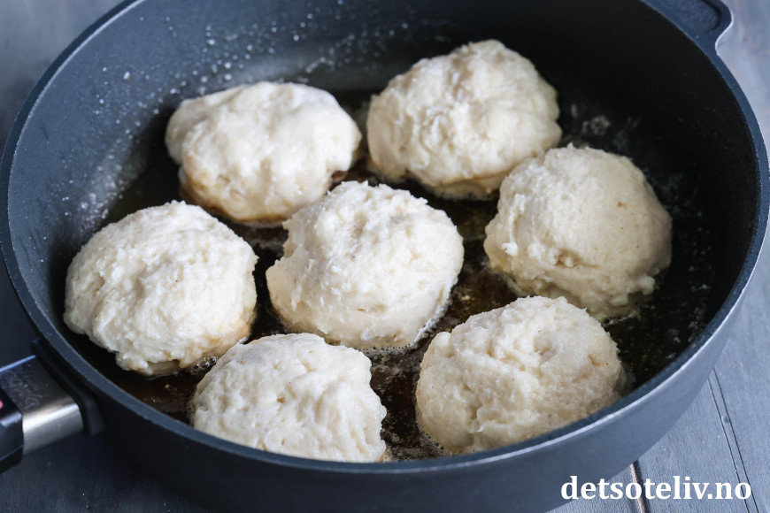 Brun dem først på begge sider og la dem så steke videre under lokk til de er gjennomstekte inni.