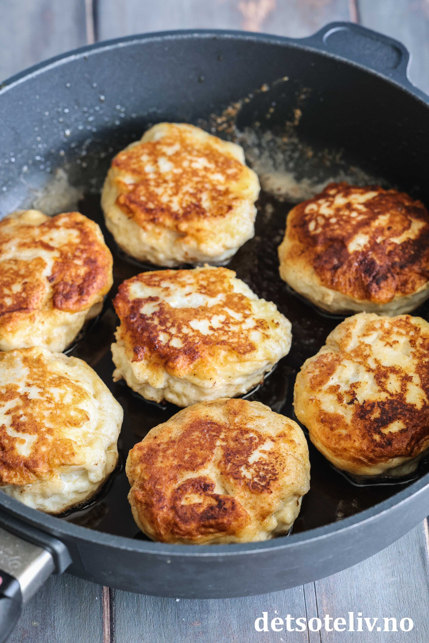 ♥ Stek gjerne en liten prøvekake i starten for å sjekke om fiskemassen er nok salt og krydret. Hvis du synes det trengs mer, kan du blande litt mer salt og krydder i fiskemassen før du starter stekingen for fullt.