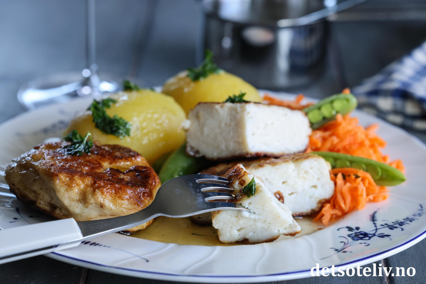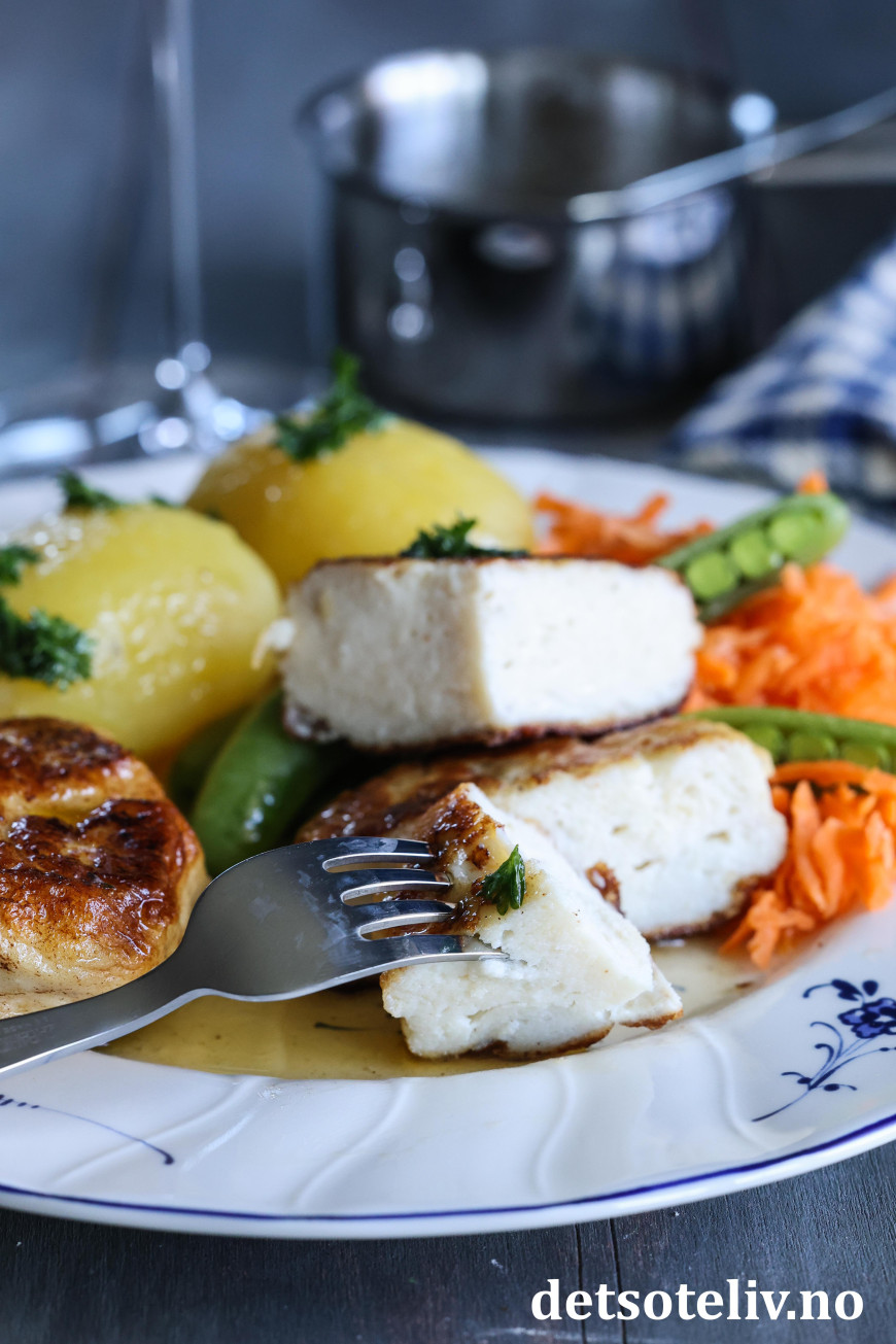 Se også Hjemmelaget fiskekaker med brun saus der jeg har brukt en kombinasjon av 50/50% torsk og kolje.