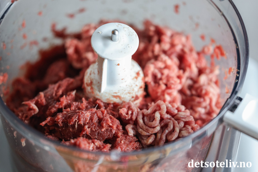 Kjør kjøttet sammen så det blir mest mulig most.