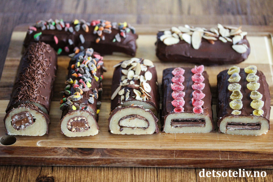 Lekre, hjemmelagede marsipanbrød lager du raskt ved å legge marsipan rundt din favorittsjokolade.