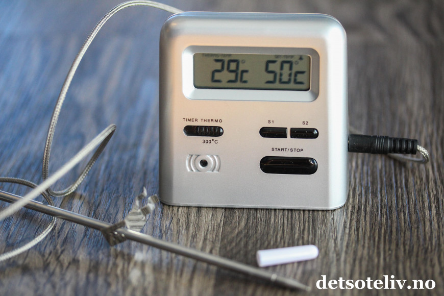 Termometeret jeg har brukt her er veldig praktisk, for den har en alarmfunksjon og kan stilles inn til ønsket temperatur.