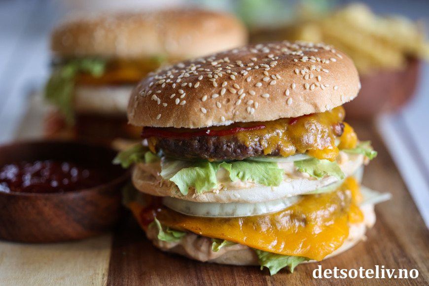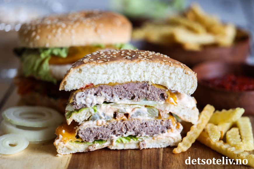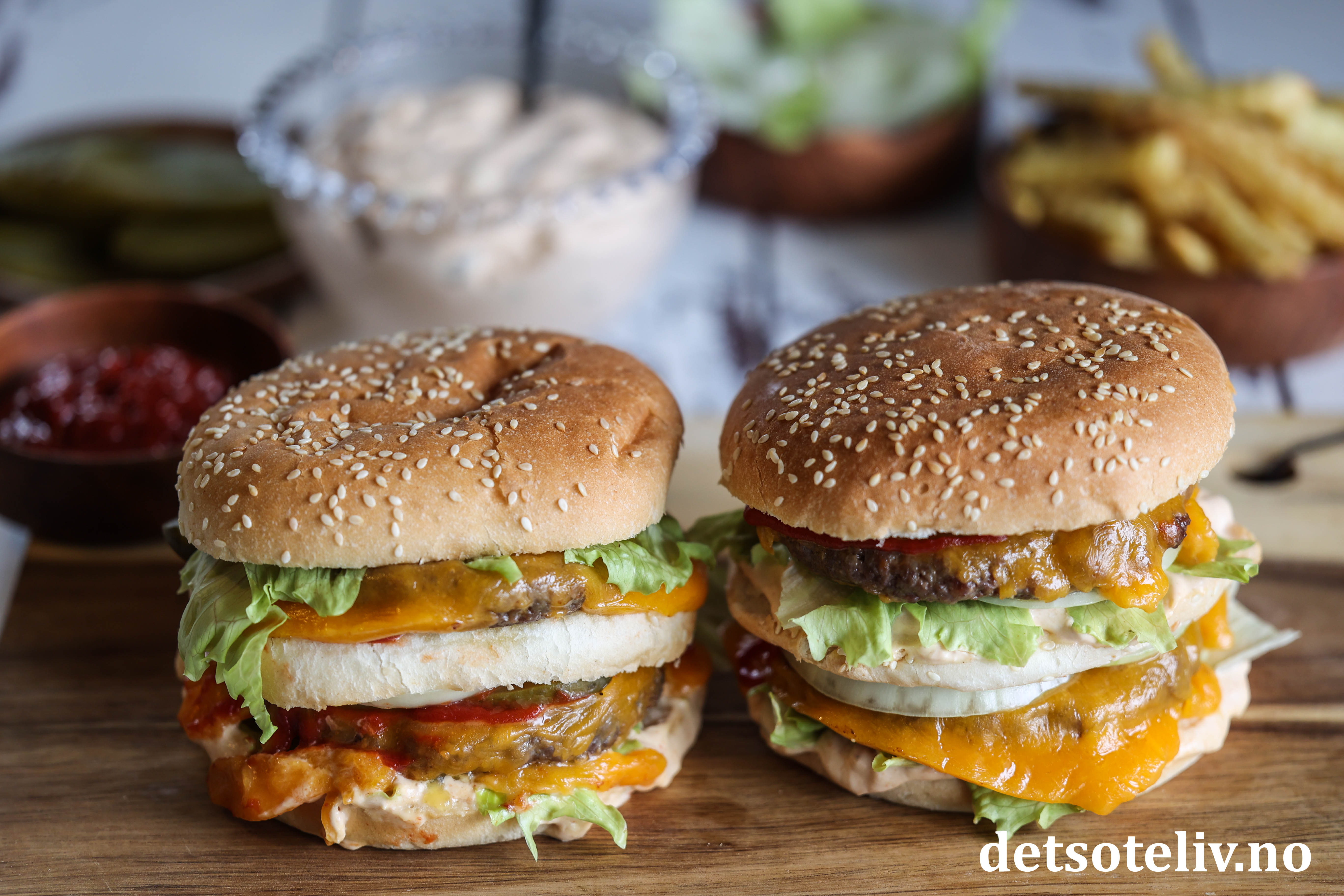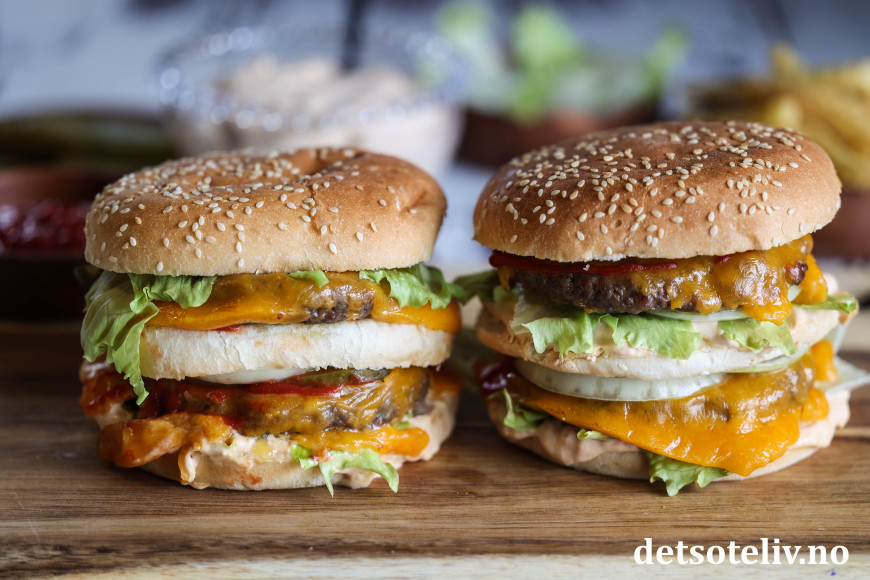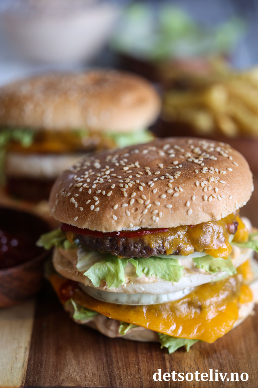 Herlig Big Mac Burger à la McDonald's - som er nokså lik en Dobbel Cheeseburger! 😍