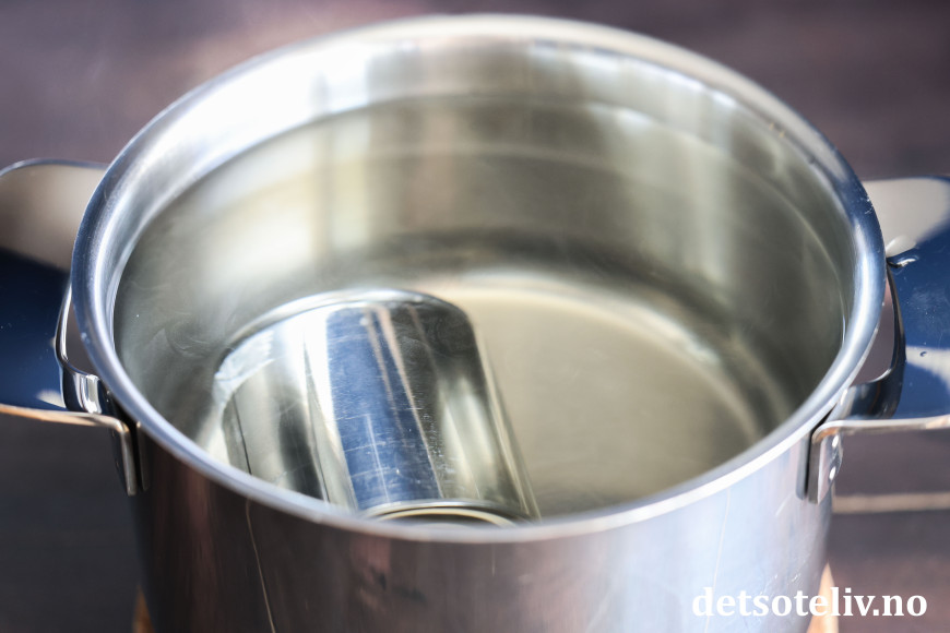 Ha boksen i en romslig kjele og fyll opp med varmt vann.
